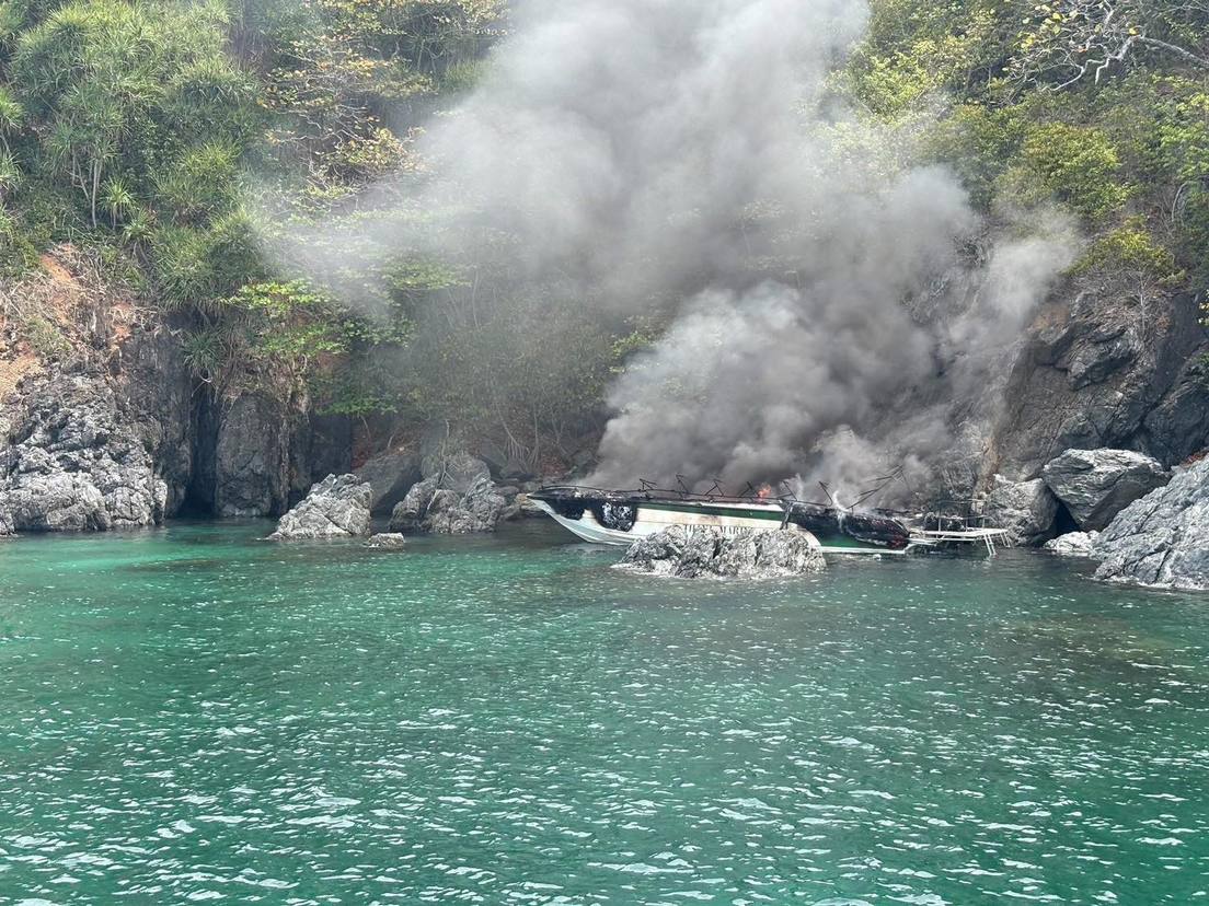 La Thana Marine 555 tuvo problemas con el motor, se incendió y explotó después de llegar a la isla, indicó el funcionario, apuntando que en el momento del estallido había tres personas a bordo —el capitán y dos tripulantes— y unos turistas estaban nadando cerca. El fuego destruyó completamente la embarcación.